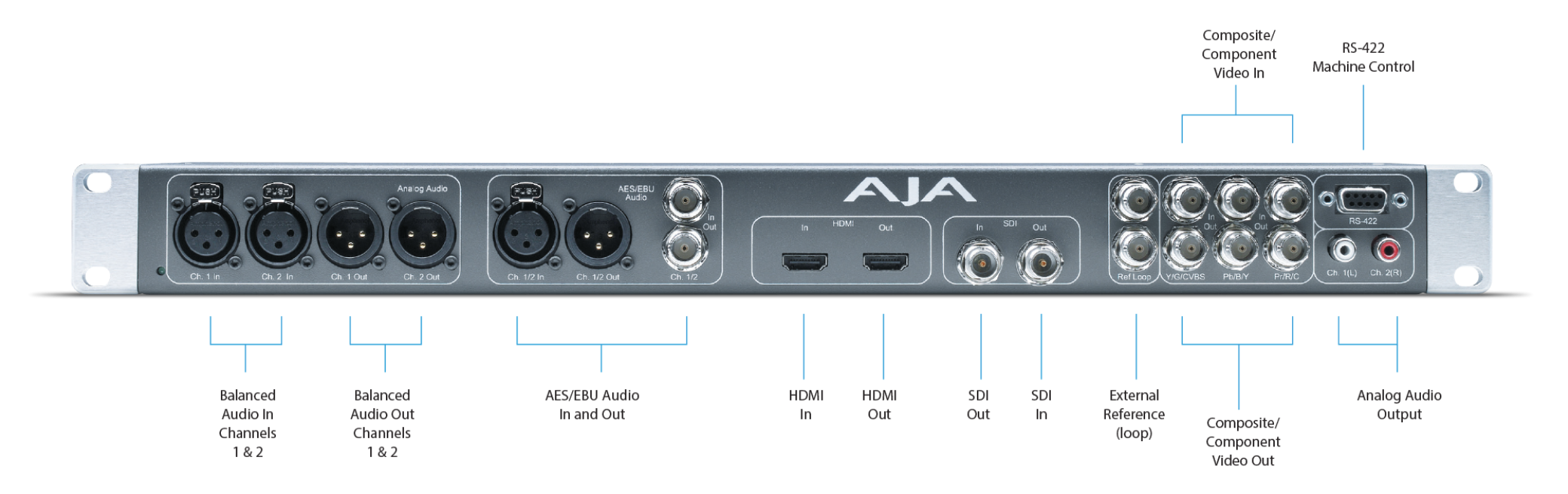 The optional KHLi-Box breakout box lets you integrate KONA LHi easily into rack environments for quick access to all video and audio connections. Additional connectivity includes BNC digital AES/EBU connectors and RCA audio monitoring jacks.
