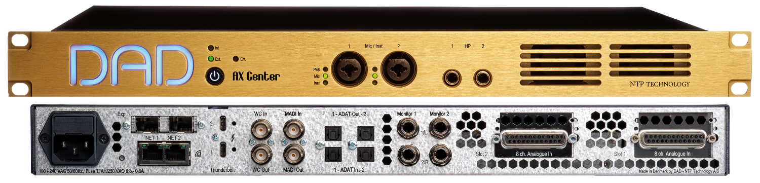 AX Center was born to sit in a rack right next to you in the studio, in your portable rig – or maybe even on your desktop. It’s the audio interface that dreams are made of, as it unites the distinguished audio quality of pristine Digital Audio Denmark AD & DA conversion with the renowned transparency and musicality of the DAD mic preamps. It’s all about capturing the source truthfully and get it into your DAW exactly as it is.Â