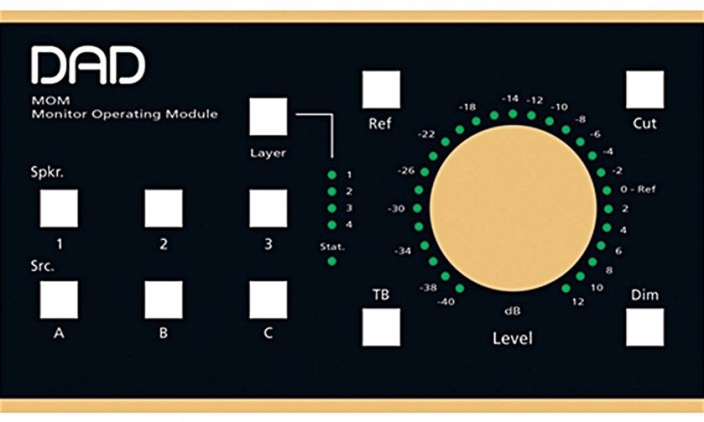 MOM is a remote control for the Pro│Mon monitor profile in the DADman control software. It features ten user-programmable keys, a rotary encoder and a GPI input for an external switch. You can assign almost any function in the monitor profile to any key on MOM, making it easy to configure it for your specific needs. MOM offers 4 layers of keys, making up a total of 40 programmable keys.